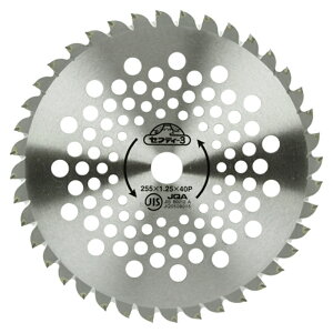 台金に刃を設けて切れ味をプラスしました。■■■用途■■■刈払機用チップソー。■■■機能・特徴■■■台金にも刃を設けて切れ味がアップしました。柔らかい草・芝生などもシャープに切れます。台金窓を設け強度を保ちながら、軽量