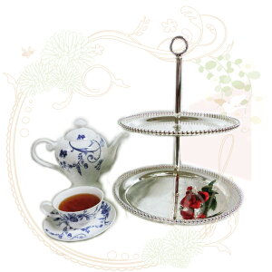 【2段デザートプレート】 高さ:46cm 大皿:Φ320mm 中皿:Φ22mm 上段と下段の間隔:20cm。材質合金の上にクロムメッキが施されております。(銀製品ではございません)。お手入れは水洗いのみで簡単です...