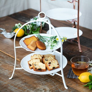 サイズ:H20.5cm (上)φ15cm (下)φ20cm 素材:陶器/スチール製 製造:中国 多層式のおしゃれでかわいいケーキスタンド。純白の陶器がケーキやフルーツを引き立ててくれます。組み立て式で収納も便利。 スタンド式でお姫様気...