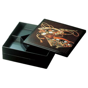■商品名:二段重 ■商品:約24×24×高さ11cm・日本製 ■材質:ABS樹脂(ウレタン塗装金箔加工/山中塗)●仕切り小鉢付 ■箱:約25×25×14cm(化粧箱) ※商品情報等が変更になる場合がございます。 ※性質上、色彩