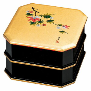 金沢の金箔を1枚1枚丁寧に取り箸で摘み手で貼っています。煌びやかな金箔と匠(たくみ)の技で描き上ました。 日本製 化粧箱 PF 重箱(約150×150×100mm)×1 約670g