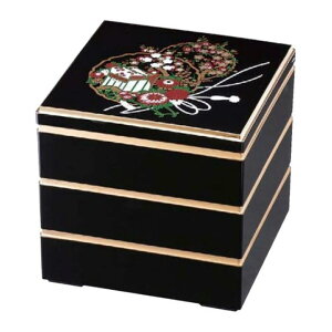商品情報商品名:7.0寸重 黒 花御所車(内朱塗) 2段メーカー名:福井クラフト外径寸法:幅210×奥行210×高さ135(mm)1段内径寸法:幅202×奥行202×高さ54(mm)重量:蓋210g/親1段(本体)270g材質...