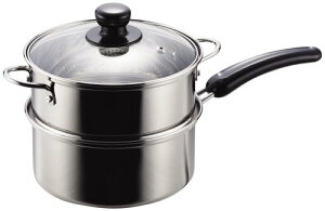e)蒸し器シルバー/2段18cm(片手)/H-5874・Size:2段18cm(片手)Style:e)蒸し器・パッケージ個数:1・サイズ(約):全長385×幅200×高さ200mm・本体重量(約):1.0kg...