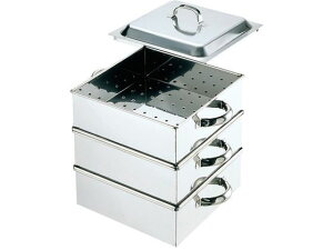 ◆18-8ステンレス製の業務用角蒸器です。 ◆目皿は取り外し可能でお手入れ簡単&衛生的! ◆蒸気でやさしく温めて、素材の持ち味を引き出しながら、ふっくら 蒸し上がります。蒸し料理は油を使わないのでとってもヘルシー! ◆饅頭や