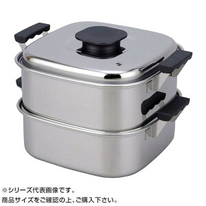 ステンレス製の角蒸器。18-0ステンレスを使用した角蒸器です。サイズ内寸:縦220×横220mm個装サイズ:22.4×32.4×26cm重量個装重量:2200g素材・材質18-0ステンレス仕様中子:深さ100mm水槽:深さ75mm1段...