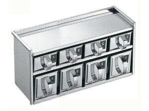 【業務用厨房機器のキッチンマーケット】 18-8引出式ヤクミ入 2段6ヶ入 規格 : [2段6ヶ入] 外寸 横 縦 高さ : 328×150×H220mm 材質 : 18-8ステンレス