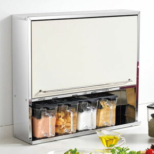 ●調味料をひとまとめにして、キッチンもスッキリ整理整頓! 扉はフラップタイプなので開けたまま片手で出し入れも簡単です。また、ローラー付きで、嫌な金属音を防止、開閉もよりスムーズ、水ハネや油汚れから調味料を守ります。本体