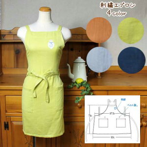 選べる4色 コットン刺しゅう入りエプロン サイズ:バスト79〜87cm、身長154〜162cm 素材:綿100%色:ブラウン・イエロー・ブルー・ネイビー 肩紐2段階調節 インド綿の特徴としての柔らかい風合い・通気性があり、丈夫で暑い...