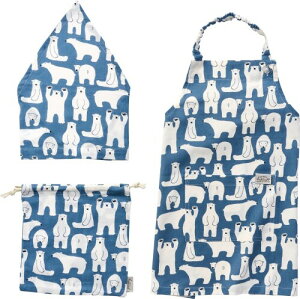 (レップ) キッズエプロン Cony2 BL 3Pセット 対象範囲:100〜130cm/エプロン:約W56 H60/バンダナ:約W53 H36/巾着:W26.5 H25/ネームタグ付き/エプロン:首紐ゴム(2段階調整)、腰紐ゴム(2段...