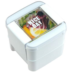 サイズ/約幅11.4×奥行10.8×高さ9cm 容量/総容量:500ml 上段:230ml、下段:270ml 内容量/1個 (本体、ミニフォーク) 材質/蓋、本体、ミニフォーク:ポリプロピレン 中蓋:ポリエチレン