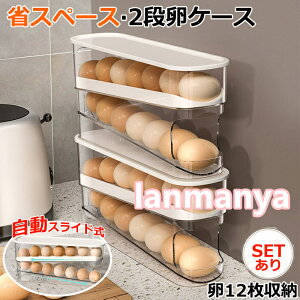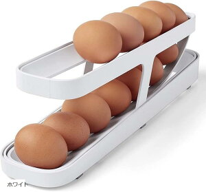 たまごケース 卵入れ 冷蔵庫用 たまご収納 冷蔵庫用 自動ローリングエッグコンテナ 2段エッグラック 卵保存容器 生卵用 卵の容器 卵ディスペンサー ラック ホルダー キッチン (ホワイト)プロフェッショナルプロセス