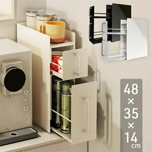 隠せる調味料ラック2段 ブラック ホワイト◆調理中によく使う醤油やサラダ油などを、コンロ横にまとめて収納できる調味料ラック棚下から取り出さなくても、キッチンサイドでひと手間を省きます。◆見せない収納がおしゃれ隠せる引き出