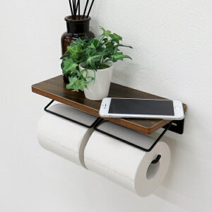 ◆天然木とアイアンの組み合わせが特徴で、洗練されたデザインがトイレ空間を引き立てます。 ◆2連式で、2倍巻きや3倍巻きのペーパーにも対応し、実用性に優れています。 ◆棚付きで小物を置くことができ、収納スペースとしても活用可