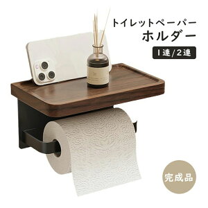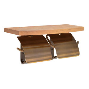 トイレットペーパーホルダー おしゃれ 2連 棚板付き 天然木 木製