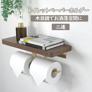 トイレットペーパーホルダー 木製 紙巻き器 2連 おしゃれ トイレ用品 トイレ インテリア ダブル ゴールド 棚付き 小物置き 収納 北欧風 キッチンペーパー 洗面所 収納 ペーパータオル ホルダー2連...