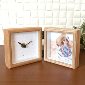 クロック&フォトフレーム 本物の木材を使った上質感のあるフレーム 外寸:104×104 内寸:91×91 窓寸:85×85 材質:ベニヤ、紙、MDF 管理ID「#2*rdsf02sqc」