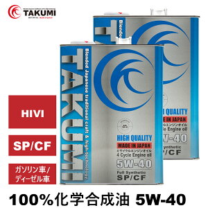 SAE粘度:5W-40。容量:4L×2(8L)。規格:SP/CF★API規格取得★。ベースオイル:100%化学合成油 合成油 HIVI。適合:ガソリンエンジン/ディーゼルエンジン。