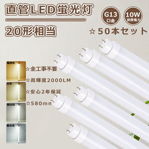 製品仕様 ■製品名 LED蛍光灯20W形【50本セット】(工事不要タイプ) ■消費電力 10W ■色温度 電球色3000K・白色4000K・昼白色5000K・昼光色6000K ■口金 G13 ■単品サイズ...