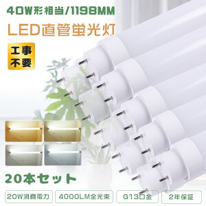 商品名 LED蛍光灯 40W形(工事不要タイプ)【20本セット】 消費電力 20W 全光束 4000LM 200LM/W 口金 G13(180°回転式) 入力電圧 AC85V〜265V 50/60HZ...