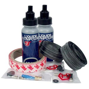 チューブレス・スープラセット27.5インチ用 ノーマルリム用キット タイヤ2本分 セット内容 : リキッド(タイヤシーラント) 100ml × 2、27.5" リムテープ × 2、両面テープ 4m × 1、バルブキー × 1、チューブ...