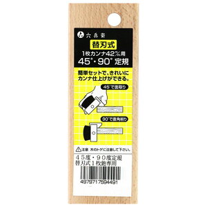 替刃式1枚カンナ42mm」専用定規。●「六兵衛 替刃式1枚カンナ 42mm」(別売り)と合わせて使用してください。鉋台の側面にはめて使用すれば、45度と90度の面取りが簡単に行えます。かんな カンナ 定規4940033151712