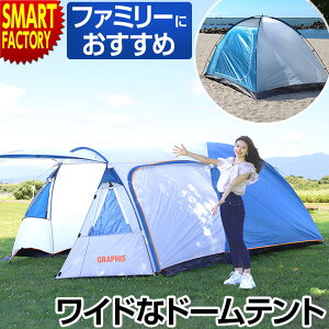 オールインワン ドームテント】 4〜5人対応の本格的な超大型テント。キャノピー部を展開して、広々とした前室の設営が可能。ダブルウォール構造で、外側のカバーは撥水仕様。急な雨にも対応した機能性の高いテントです。