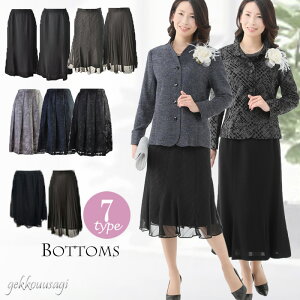 ボトムス スカート パンツ ロングスカート コーデ 黒 ブラック ベージュ ネイビー ロング ひざ下丈 膝下丈 ブラックフォーマル ラメシフォン プリーツ オパール 花柄 無地 ウエストゴム入り ひざ丈 9号(W62〜70)、11号(...
