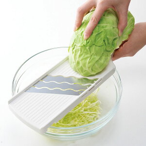 カーブ三枚刃でキャベツの千切りが素早くできるカーブ刃でなめらかにスライスできる3倍のスピードでスライスができるふわシャキキャベツが簡単にできるホルダーを本体にセット刃をカバーできる●材質:刃部/ステンレス刃物鋼本体/ABS樹脂