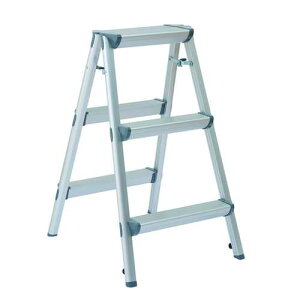 高いところに手が届き簡単に設置できるコンパクトでスリムな脚立。さっと広げてすぐに使用可能。丈夫で軽いアルミフレーム製。折りたたんだ後、持ち運びに便利な取っ手が付き。高いところにも手が届く三段式脚立。耐荷重150kgの頑丈設