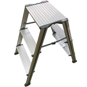 <特長> ●シックなブラックカラーアルマイトが施されています。 ●開き止めがワンタッチバーになっており片手で折りたためます。 ●グッドデザイン賞を受賞しています。 ●工具などを置ける便利な天板トレー形式 <用途> ●内装工事