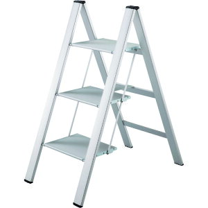 ●スタイリッシュなデザインが魅力、イスにもなる幅広タイプの踏み台です。●収納時の幅が48mmと超スリムになる為、収納場所に困りません。●室内で高い所の物の出し入れ、電球の交換や壁面の作業に。●ワイドなステップで腰をかけての