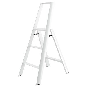 折りたたみ脚立・商品色:ブラック、ホワイト・材質:鉄・サイズ:ステップ2段式、3段式、4段式・商品重量:3.4kg(2段式)、5.1kg(3段式)、5.8kg(4段式)・耐荷重:150kg。