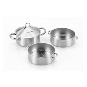 :各種熱源対応★商品デザイン 耐久性に優れたステンレス製の2段・3段蒸し器です。★上下鍋を組み合わせて蒸し料理に、下鍋だけでゆで物や煮物料理に蒸し器でヘルシークッキン