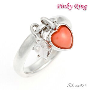 個性あふれるアニバーサリーアイテムをお届け!≫初めての方へ シルバー925 ハートサンゴ&キュービックピンキーリング -コメント- ぷっくりとしたカボションカットのハートのサンゴと、キラキラと輝くキュービックジルコニアが小指でぷ