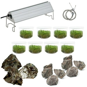 メーカー:用品+生体植物セット品番:LED-V300S-R1水草をはじめたい方におすすめのレイアウトセットと水草育成向けLEDのセット!風山石と組織培養キューバパールグラスセット(無農薬)+アクロLED VIVID300...