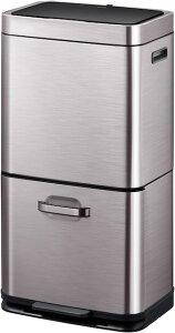 分別に便利な上下2段式のセンサーゴミ箱。上段は自動開閉のセンサーゴミ箱35L、フタの開閉を自動で行います。下段は手動・足踏みの引き出し式ストッカー25L、ペダルを踏むと開きます。上下段ともに衛生的に使...