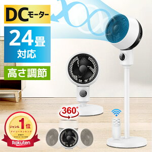 DCリモコン360°サーキュレーター ブラック 360°首振り 左右首振り3段階 主に〜20畳用。製品サイズ(約):幅220mm×奥行215mm×高さ310〜380mm(上向時)。重量:約1.8kg。定格電圧:AC100V...
