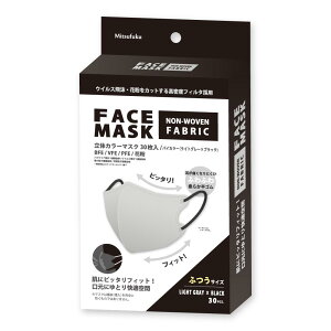 カラーグレージュ×ブラック 本体サイズ(cm)16×9×16p マスクサイズ13.8×11.3(折り畳み時) 枚数30枚 特徴高機能でファッション性の高いマスクです。独自の3D設計で鼻が痛くなりにくい。グレージュ×ブラックのみの30枚...