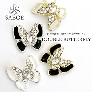 商品説明文サイズ:12ミリ×13ミリ 素材 :メタル クリスタルストーン 蝶々に小さなクリスタルストーン蝶々が重なったデザイン。裏面にパーツを付けて、ピアスなどのアクセサリーも制作していただけます。 シンプルに1つ置くだけでゴー