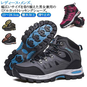 23〜28.5cm レディース・メンズ、幅広いサイズを取り揃えた男女兼用のミドルカットトレッキングシューズ。【防水&つま先保護&衝撃吸収&通気】アッパーはPUを使用して通気性、撥水透湿性に優れ、水の浸入を許さず...