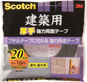 スタイル:新モデル◆商品名:3M スコッチ 強力両面テープ 建築用 厚手 幅20mm長さ10m PBA-20R【製品情報】使用温度範囲:-30~80℃ / サイズ(厚みx幅x長さ): 1mm x 20mm...
