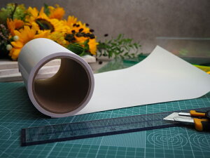 発泡両面粘着テープ サイズ 100mm幅×4.3m巻 厚み:1.10mm 入り数1巻 材 質基 材:特殊ポリエチレン発泡体(白)粘着剤:アクリル樹脂系 強粘着タイプ剥離紙:上質系 黄色 商品説明*工作用・クラフト用として