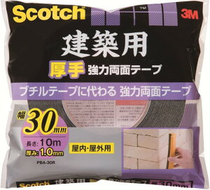 3M スコッチ 強力両面テープ 建築用 厚手 幅30mm長さ10m PBA-30R ブロックや木材にも接着可能! 屋外の寒いところでもベタベタくっつきます。ブチルテープに代わるシール材としても使えます...
