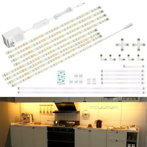 2.4m 電球色 間接照明 led フィギュアライト 0.3Mx8本 連接可能 DIY 装飾用 両面テープ 取付簡単 SMD2835 144LED 正面発光 高輝度 キャビネット/キッチン/寝室/お部屋...