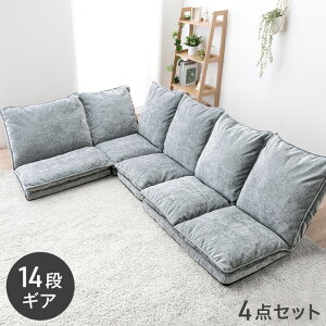 【送料無料】組立設置サービス便付き(梱包材の処分まで無料)ヘッドリクライニング付きコーナーソファー ファブリック カウチ グレー 4人掛け