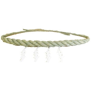 しめ縄は神事の聖域と下界を区別するために張る縄。しめ縄には紙垂または四手と呼ばれる紙片を挟み込みます。稲妻の形である紙垂は豊作を表し、邪なものを祓い聖域を示しています。紙垂4枚付き。寸法 長さ:約120cm...