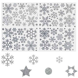 クリスマス 静電ステッカー (30* 20.5cm/4枚) クリスマス飾り ウォールステッカー スノーフレーク静電ステッカー 雪花飾り 雪の結晶シール ガラスシール 窓ー (銀) PVC再利用可能な 剥がせ【仕...