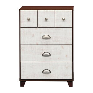 ビンテージ風のデザインのおしゃれなチェスト。3段の大引き出しと小引き出し3杯付きで小物や洋服などたっぷり収納。幅60cmのスリムですっきりとした脚付きのデザイン。