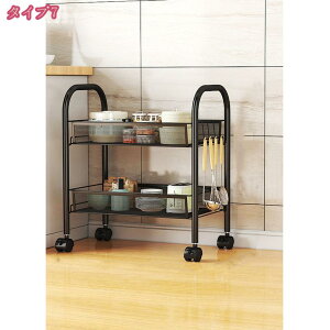 メイン素材:炭素鋼【シンプルなデザイン】 360°回転式キャスターと両側に保護フェンス付き、物を置いたままの移動でも簡単、そして横から落ちることを防ぐ。シンプルな外観デザインで、オフィス、風呂室、キッチン、リビングや書斎な