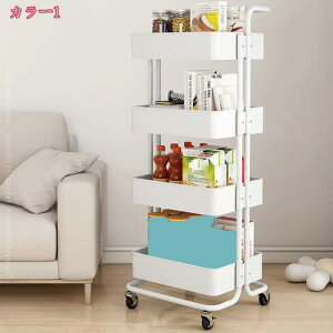 メイン素材:メタル◆「カラー」ブラック ホワイト 「サイズ(cm)」4段(4層):幅44×奥行27×高さ84cm 「内容」本体+キャスター◆「大容量&多機能」本製品は果物や野菜だけでなく、本や雑誌などから...
